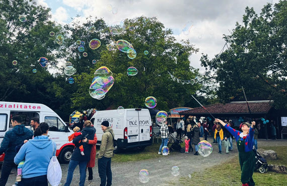 Gerne verwandle ich auch Weihnachtsmärkte, Stadtfeste oder Hochzeiten mit meinen speziellen Riesenseifenblasenstäben in ein Meer voller Leichtigkeit und Schönheit.